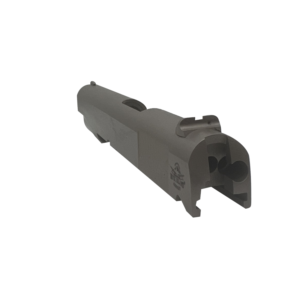 Slide is cut with barrel bushing lug grooves for easy assembly with standard barrels.