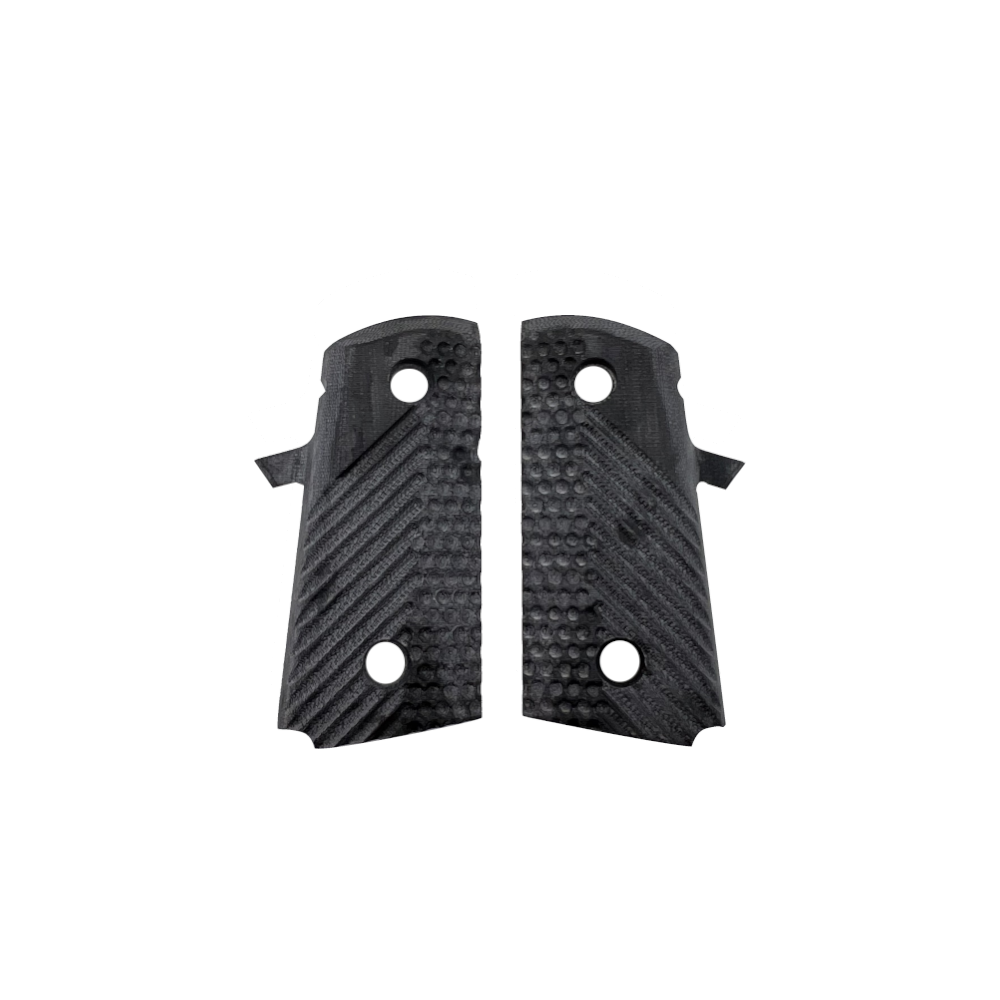 These lightweight G10 grips are made from a strong, durable material that is resistant to moisture and abrasion. They feature a high-cut beavertail backstrap and a palm swell for a more comfortable grip. The grips are also checkered for added traction.