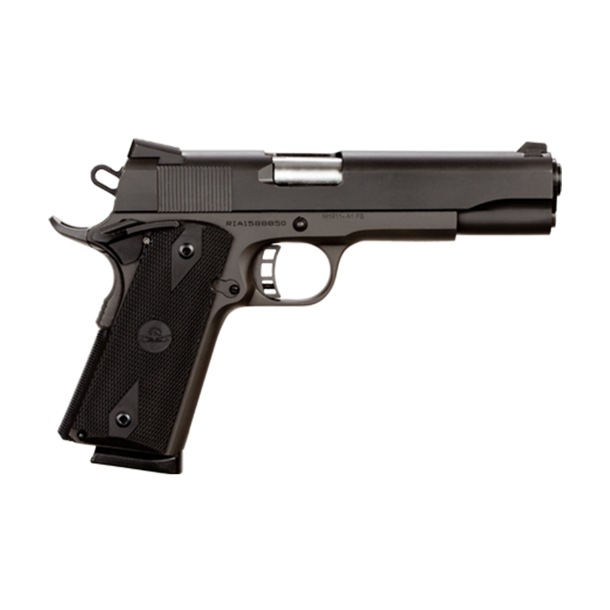 The Rock Standard full-size is built in traditional classic 70 series design and delivered with our top quality production and engineering standards. It's chambered in .45ACP with a 5” button rifled barrel supported by a full length guide rod. Smooth, angled, snag-free style allows for quick draw in fast need situations. Includes a low profile angled rear sight along with skeletonized hammer and trigger with adjustable over travel stop and ambidextrous safety standard in the Rock series. Finished with a tough, parkerzied matte coating and comes with checkered rubber grips. True to all Rock Island 1911s, it comes with a crisp factory 4- to 6-pound trigger, making it a great experience right out of the box