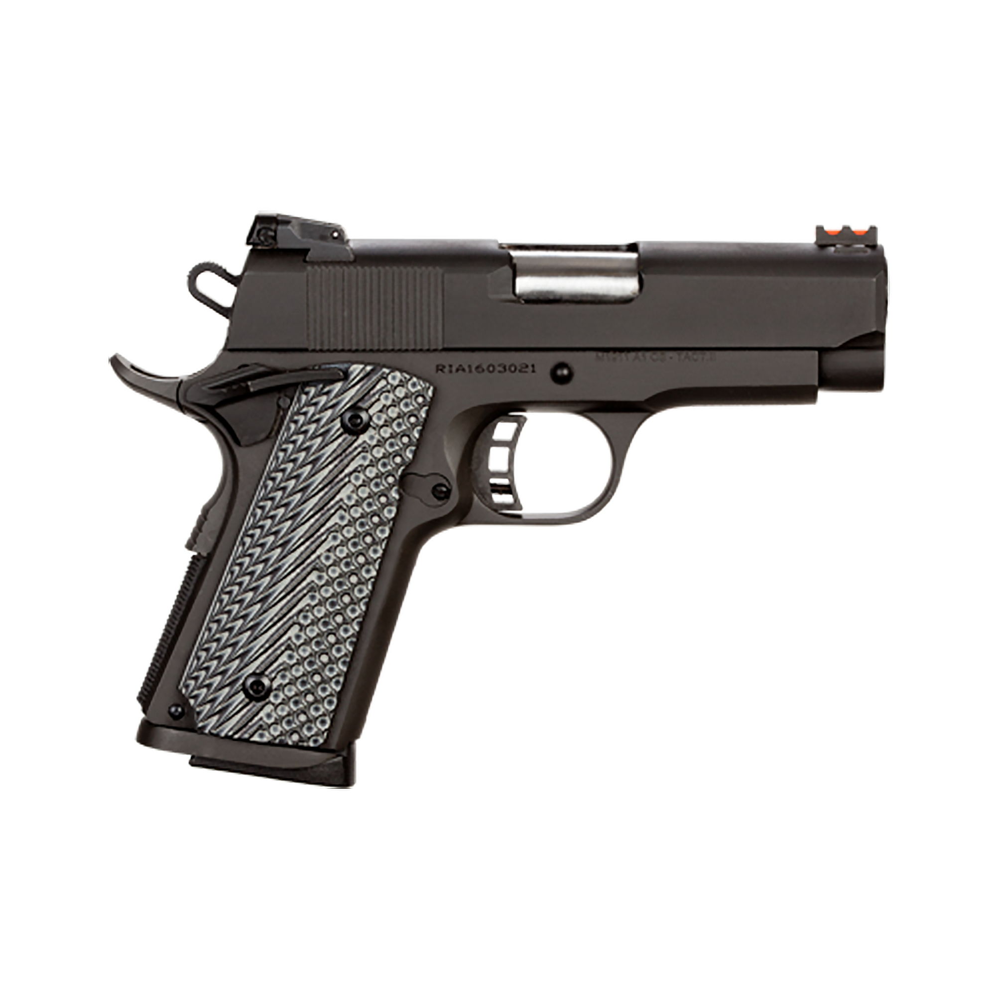 OVERVIEWThe Rock Ultra compact is built in traditional 70 series design and delivered with our precise engineering standards and first rate upgrades. This pistol is chambered in 45 ACP with a 3.50” button rifled barrel supported by a full length guide rod. Smooth angled, snag-free style allows for quick draw in fast need situations. Includes a low profile adjustable rear sight and high visibility fiber optic front sight. Also includes skeletonized hammer and trigger with adjustable over travel stop and ambidextrous safety, which comes standard in the Rock series. The Rock Ultra is finished with a tough parkerzied matte coating and adds battle ready G10 tactical grips. True to all Rock Island 1911s, the Rock Ultra comes with a crisp factory 4- to 6-pound trigger to give you a great experience right out of the box. |