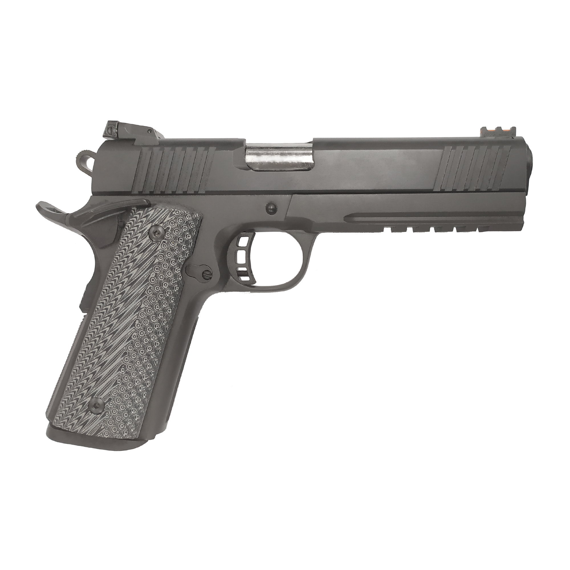 OVERVIEWThe 9mm TAC Ultra FS is constructed in 4140 Ordnance steel and refined by our carefully managed hand fitting process. It features a 5” barrel with penetrating impact and amazingly light recoil. You'll also find a skeletonized hammer and trigger with adjustable over travel stop, low-profile rear adjustable 2-dot LPA rear sight and high visibility fiber optic front sight. This pistol is fitted with battle ready G10 tactical grips, finished with a durable parkerized coating, and is engineered with front and rear CNC angle grooves and full length under picatinny rail. Add a drop-in 22TCM9R accessory barrel Built to drive the Armscor 22 TCM cartridge over 2000fps, and the TCM TAC Ultra FS is one of our most versatile tactical pistols.