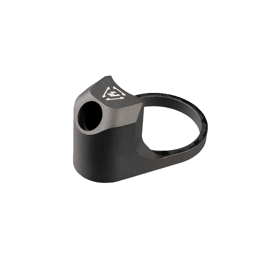 Yet another first, the Enhanced Castle Nut and Extended End plate combo represent Strike Industries’ dedication to thinking outside the box. The SI Enhanced ECN and EEP stand out from the generic parts kit units in both aesthetics and function. The steel castle nut has been lengthened to match the extended end plate, supporting more of the receiver extension’s threaded area, and improving aesthetics. The extended end plate features a Quick Detach sling swivel mount, pushed back away from the webbing of the primary hand. This allows weapons manipulations in tight spaces and under stress, without the startling pain that can result from a pinched hand when using a sling attached to a standard, flat QD end plate.
