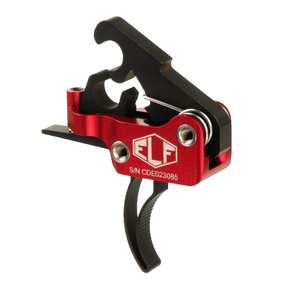 The ELF Drop-In Match Pro Trigger has been built for performance. The Elf Match Pro Trigger is identical to the Match Trigger with the addition of a proprietary threaded mounting system. The combination of aerospace grade sealed bearings, precision ground threaded bushings, and screws instead of traditional pins provide a rock-solid trigger system. Since their inception, AR platforms have always used pins to mount the trigger and hammer in the lower receiver. Because pins require some "play" in order to be installed, there is always a little play in the trigger system. This new threaded system adds a level of "solid" you need to feel to understand the difference. Pull weight is so easy to adjust it can be done in seconds without removing the trigger from your lower receiver. A second-to-none AR- 15 drop-in trigger system that is strong and light, made of wire EDM machined, hardened A2 tool steel and lightweight aircraft-grade aluminum. Installation can be done in minutes using the supplied installation screws. The Match Pro trigger may be ordered with a curved or straight shoe.