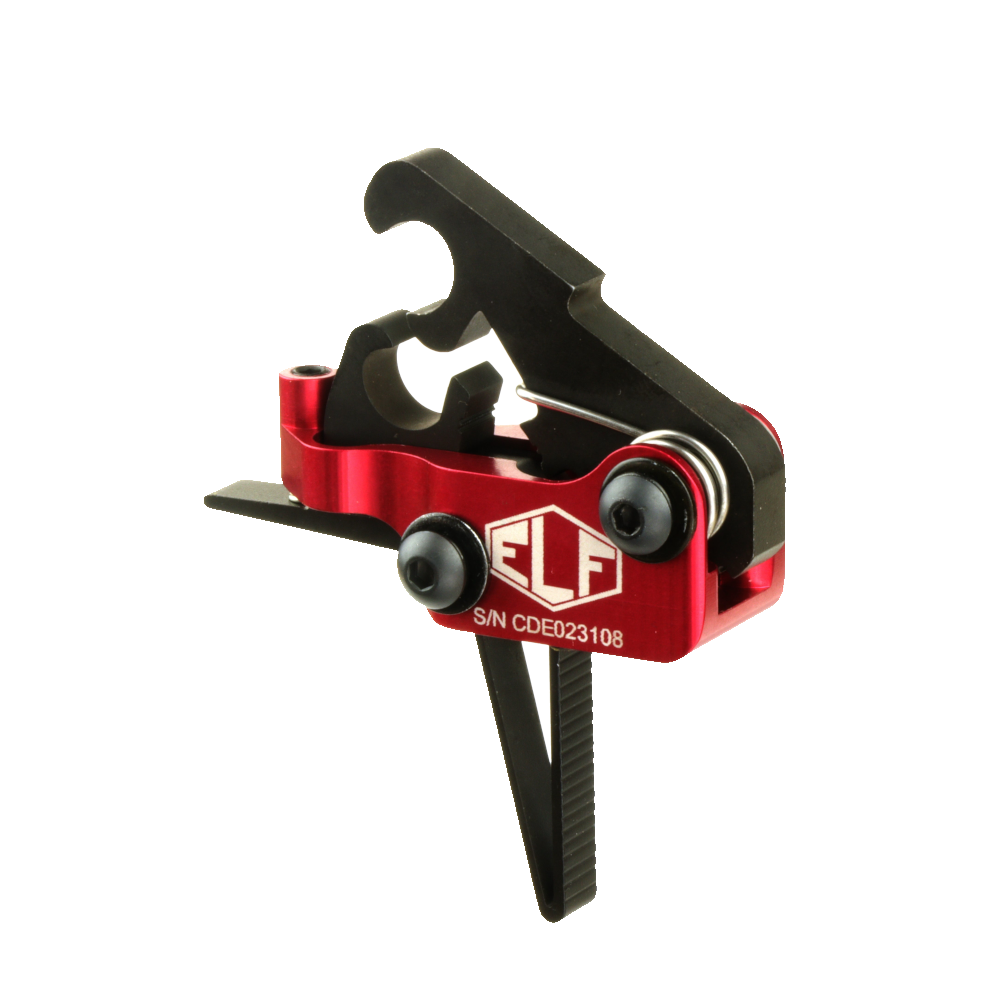The ELF Drop-In Match Pro Trigger has been built for performance. The Elf Match Pro Trigger is identical to the Match Trigger with the addition of a proprietary threaded mounting system. The combination of aerospace grade sealed bearings, precision ground threaded bushings, and screws instead of traditional pins provide a rock-solid trigger system. Since their inception, AR platforms have always used pins to mount the trigger and hammer in the lower receiver. Because pins require some "play" in order to be installed, there is always a little play in the trigger system. This new threaded system adds a level of "solid" you need to feel to understand the difference. Pull weight is so easy to adjust it can be done in seconds without removing the trigger from your lower receiver. A second-to-none AR- 15 drop-in trigger system that is strong and light, made of wire EDM machined, hardened A2 tool steel and lightweight aircraft-grade aluminum. Installation can be done in minutes using the supplied installation screws. The Match Pro trigger may be ordered with a curved or straight shoe.
