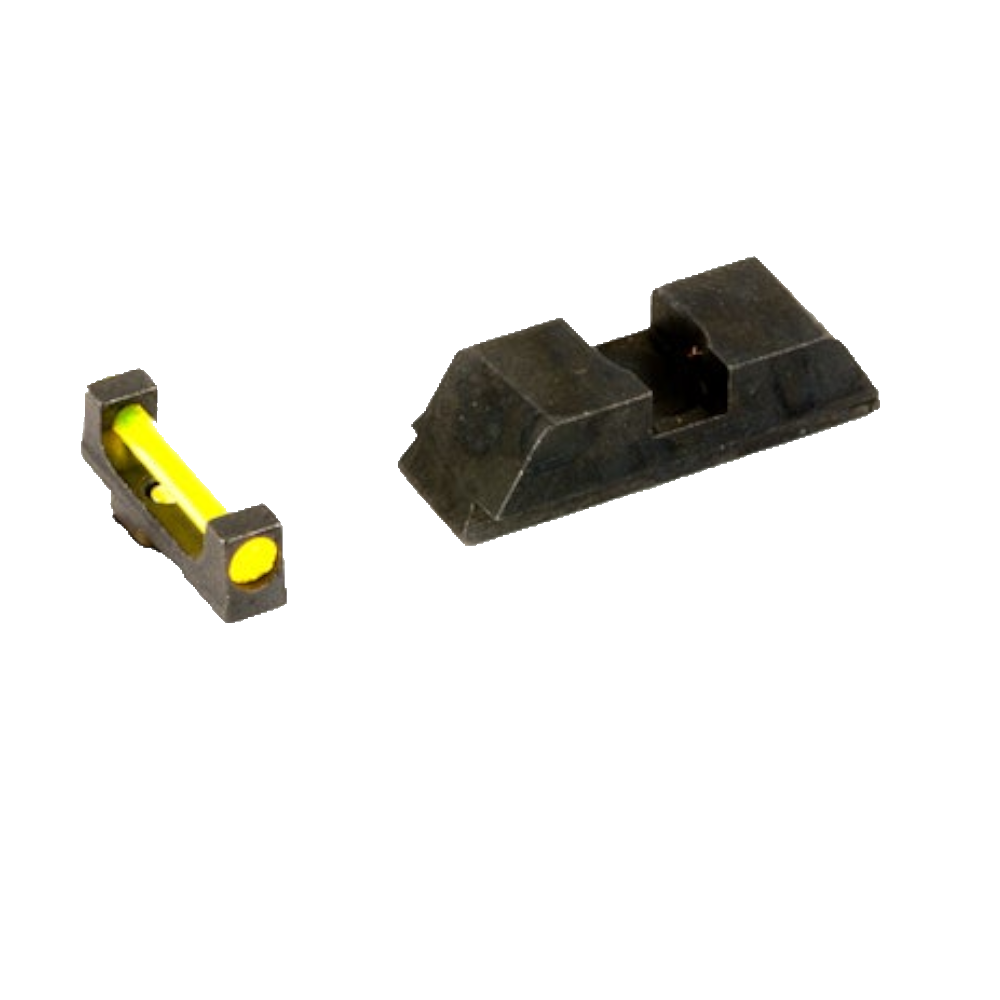 Sight set with fiber front and flat black steel rear for Glocks. Fiber optic elements concentrate ambient light and are ideal for bright environments.