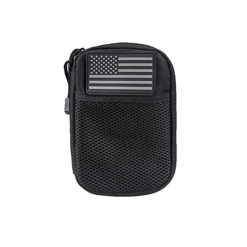 - MOLLE Utility pouch to hold and organize day to day items. Black pouch color with black and gray subdued US Flag.